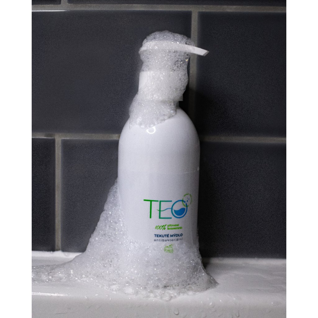 T-E-O tekuté mýdlo složené z bylinných olejů a přírodní mořské soli obohaceno vitemínem C z hlohu čínského dolpněno esenciálním olejem z levandule lékařské.